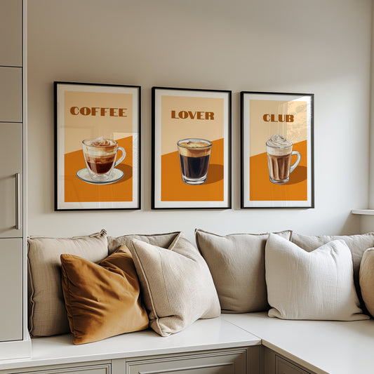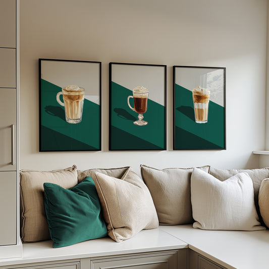 Brewed Bliss: Latte and Whipped Coffee Poster Set, Set of 3, D040