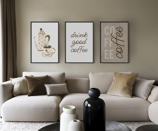 Brew Bliss: Coffee Aesthetic Wall Set, Set of 3, D071