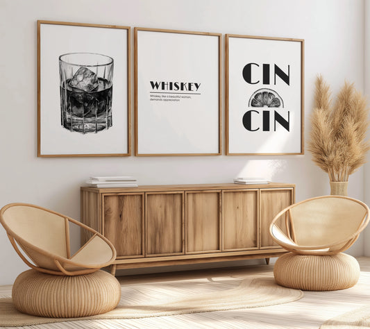 Classic Whiskey Vibes - Monochrome Bar Art, Set of 3, D005