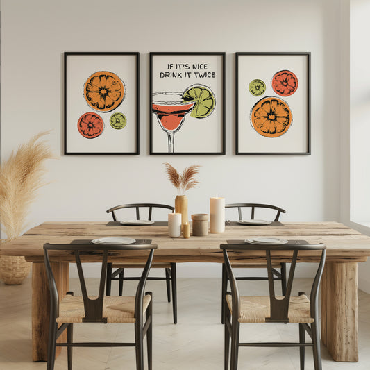 Citrus Twist: Refreshing Cocktail Wall Art Trio, Set of 3, D023