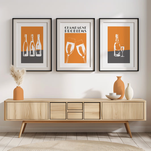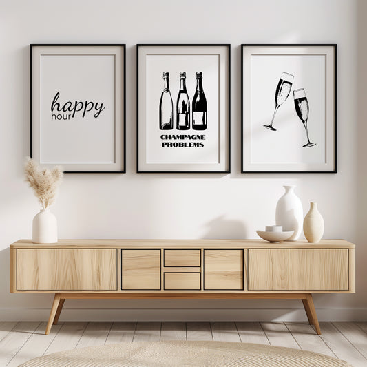 Celebrate in Style: Chic Champagne Art Print Collection, Set of 3, D026