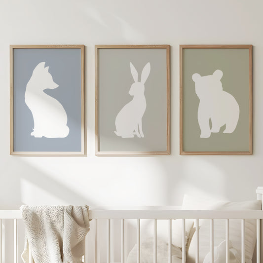 Custom Woodland Silhouettes – Fox, Hare, Bear Wall Art for Nursery, Set of 3, N037