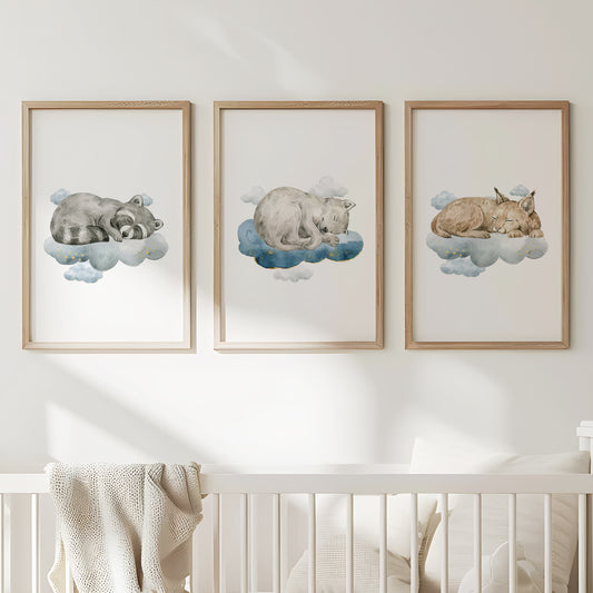 Celestial Safari: Dreamy Animal Friends Nursery Wall Art, Set of 3, N111