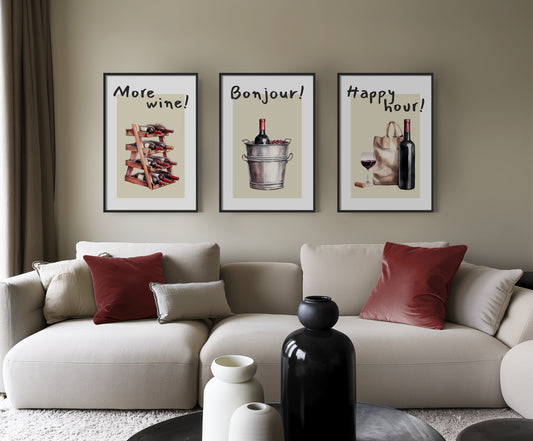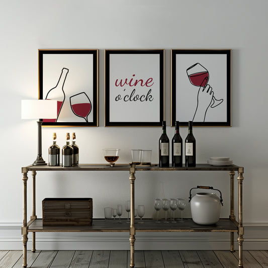 Cheers to Simplicity: Elegant Wine Artwork, Set of 3, D101