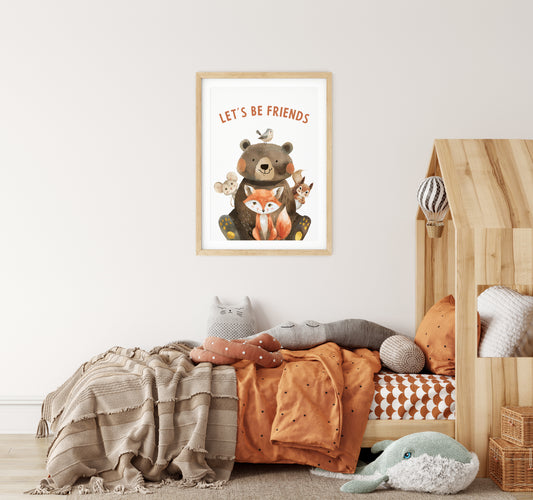 Cozy Forest Companions: Bear and Fox Wall Art N013