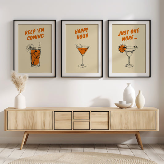 Happy Hour Wall Art Set - Classic Cocktails Collection, Set of 3, D018