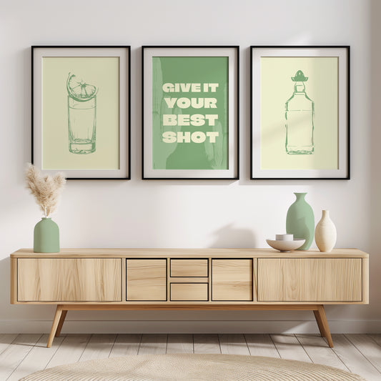 Give It Your Best Shot - Modern Bar Wall Decor, Set of 3, D035