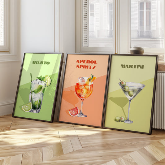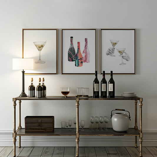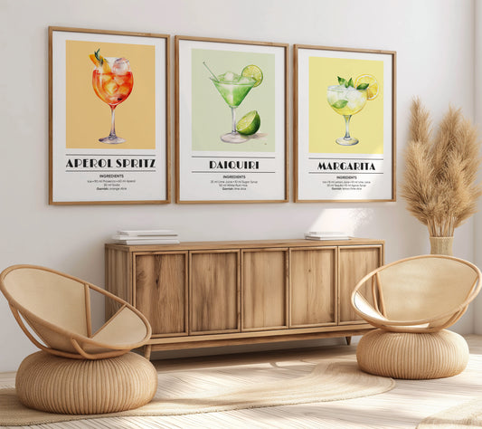 Retro-Inspired Cocktail Wall Art Set, Set of 3, D013