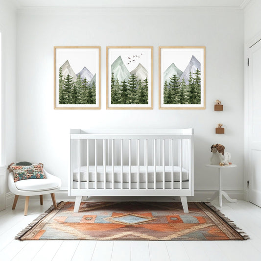 Set of 3 Tranquil Mountain Peaks - Forest Escape Nursery Art, N034