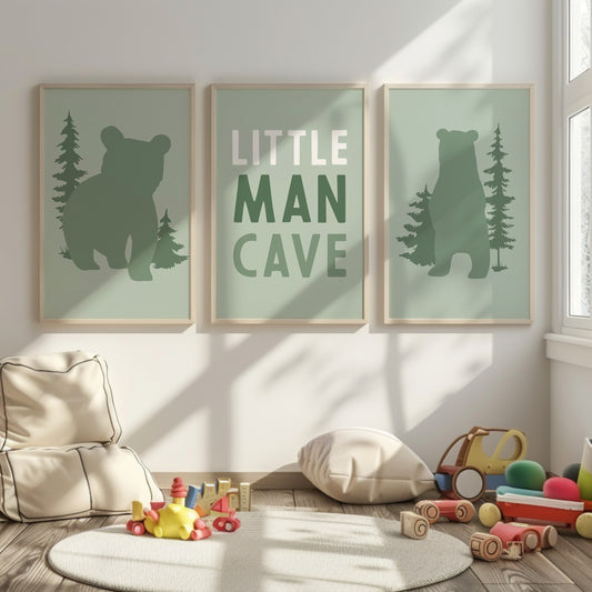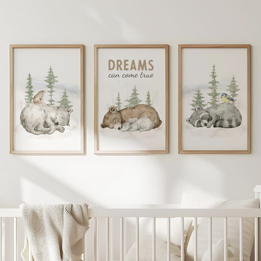 Woodland Dreams Trio - Bear, Wolf, Raccoon Wall Art, Set of 3, N048