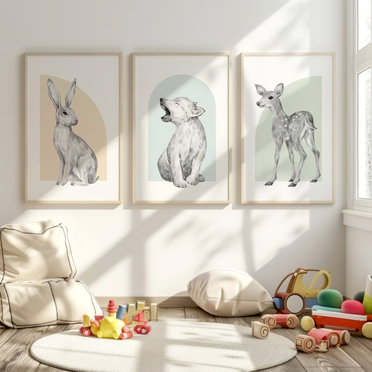 Woodland Forest Friends - Baby Room Poster Set for Nature Lovers, Set of 3, N042