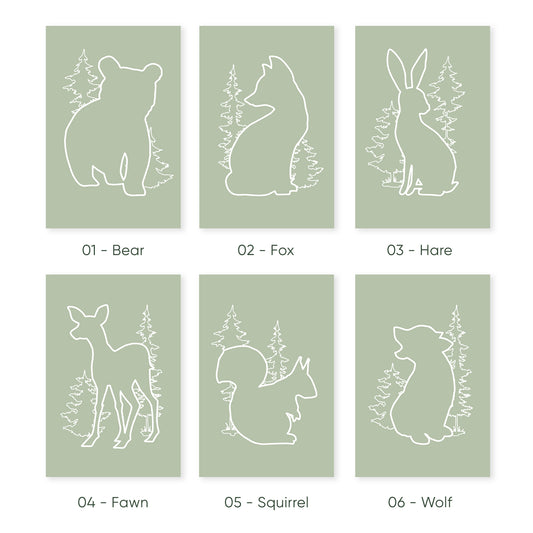 Woodland Silhouettes Trio: Wild & Free Forest Animals Poster Set, Set of 3, N059