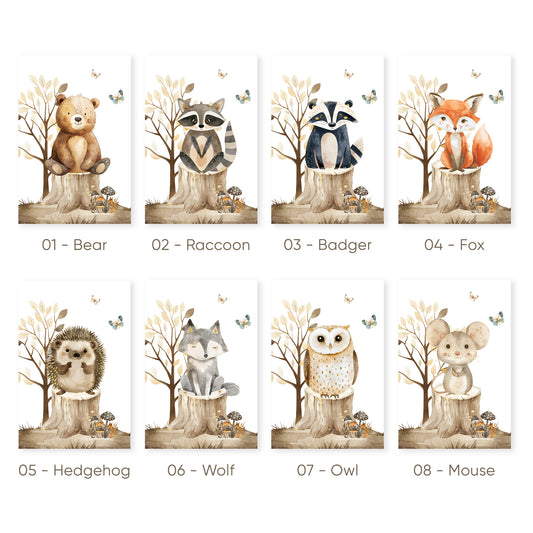 Woodland Acorn Friends - Nursery Animal Wall Art, Set of 3, N093