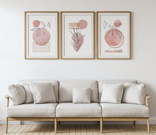 Pink Elegance: Botanical Art Prints for Modern Spaces, Set of 3, B001