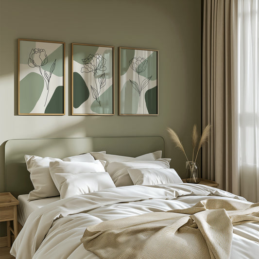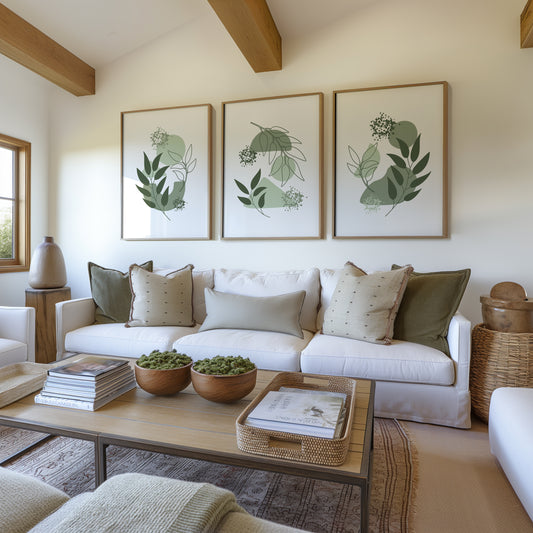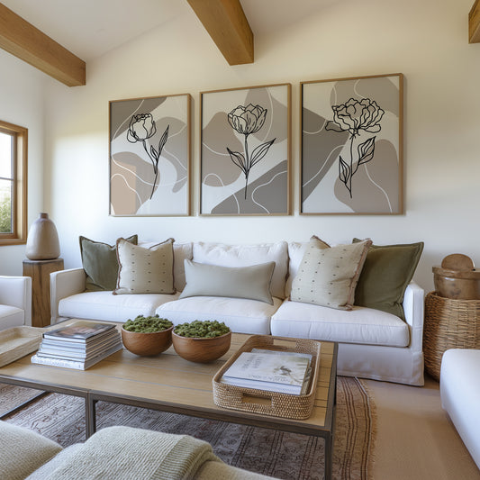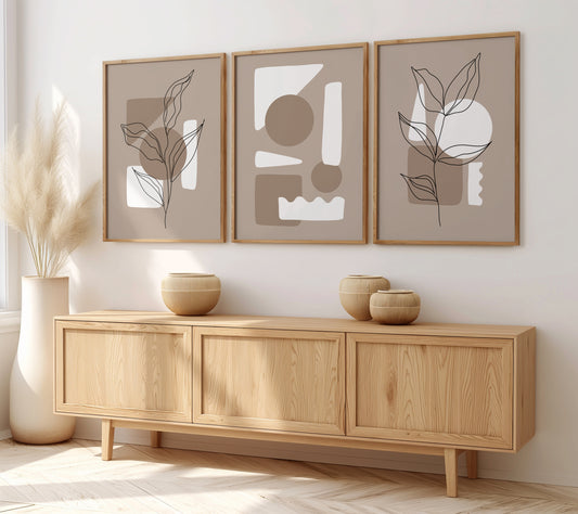 Natural Elegance: Subtle Hues of Geometry and Flora, Set of 3, B010