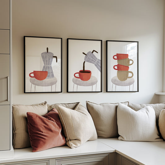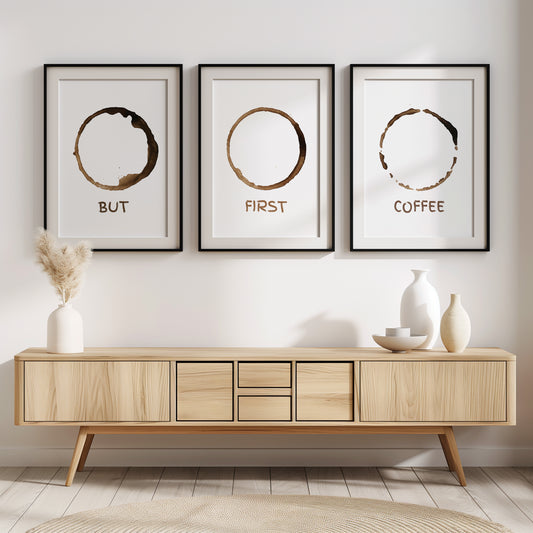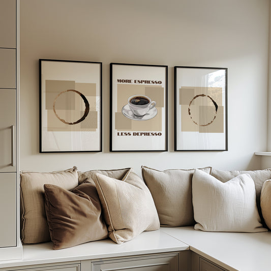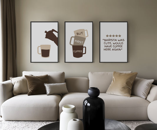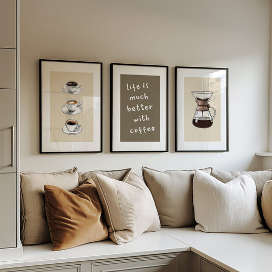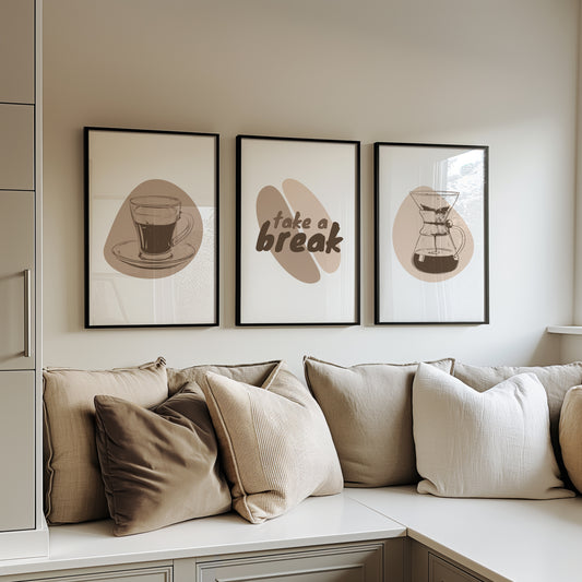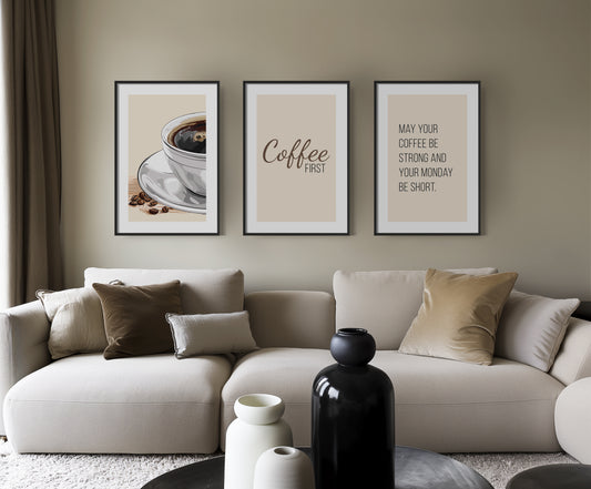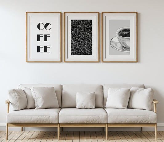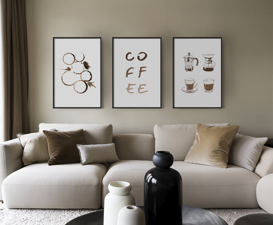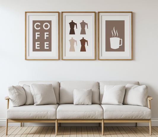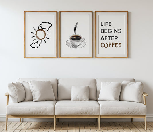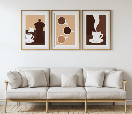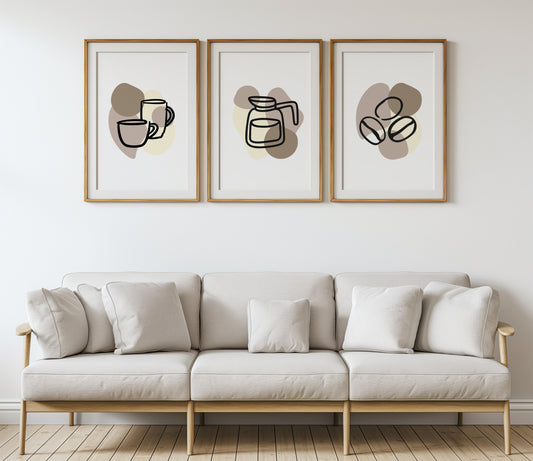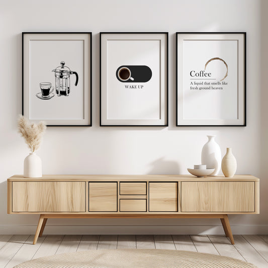 Caffeine Escape Set - Minimalist Coffee Art for Home Decor, Set of 3, D032