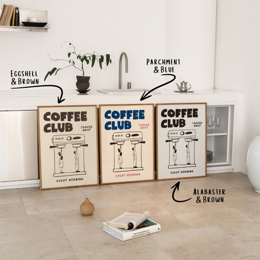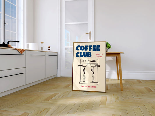 Coffee Club Art Print – Funny Coffee Wall Art for Kitchen or Office – Hand Drawn Poster for Coffee Lovers