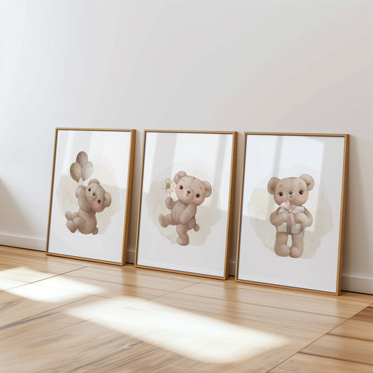 Honey Bear Blooms – Cozy Nature Nursery Art, Set of 3, N164