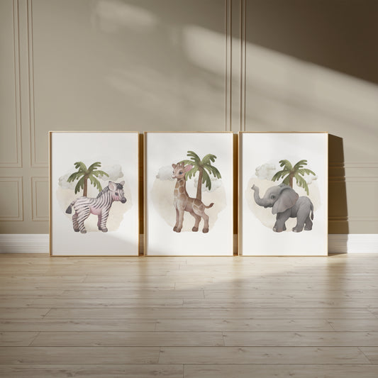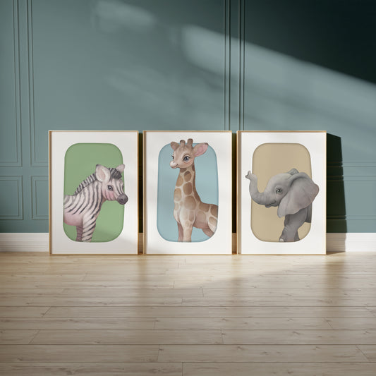 Wild Wonder Safari - Zebra, Giraffe, Elephant Prints for Kids’ Room, Set of 3, N138