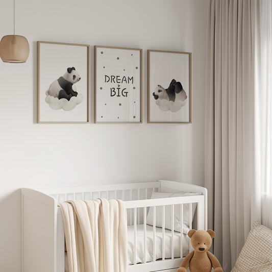 Panda Dreams: Cozy Cloud Wall Art Set, Set of 3, N145