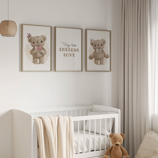 Tiny Toes Endless Love: Teddy Bear Nursery Art Set, Set of 3, N146