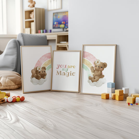You Are My Magic: Rainbow Teddy Bear Nursery Art, Set of 3, N147