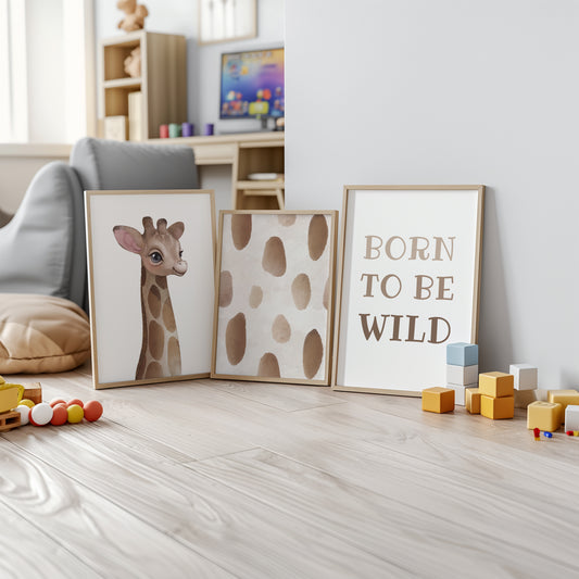 Born to Be Wild: Giraffe Nursery Wall Art Set, Set of 3, N148