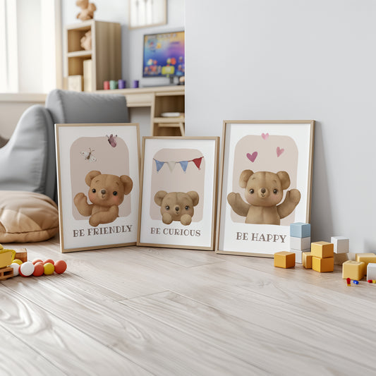Little Bear Wisdom: Friendly, Curious, Happy Wall Art Set, Set of 3, N150