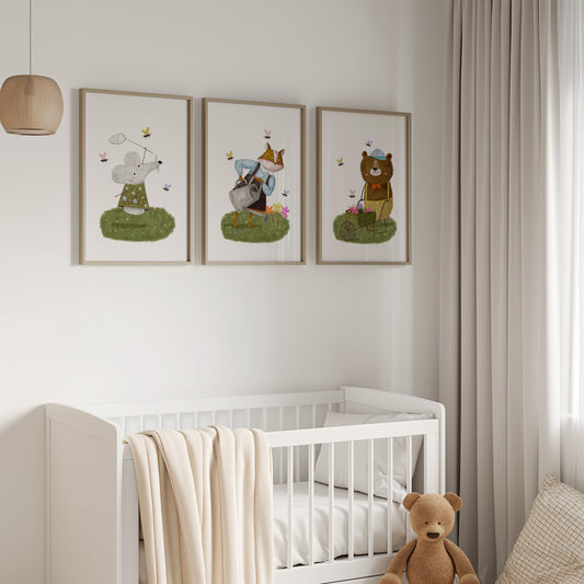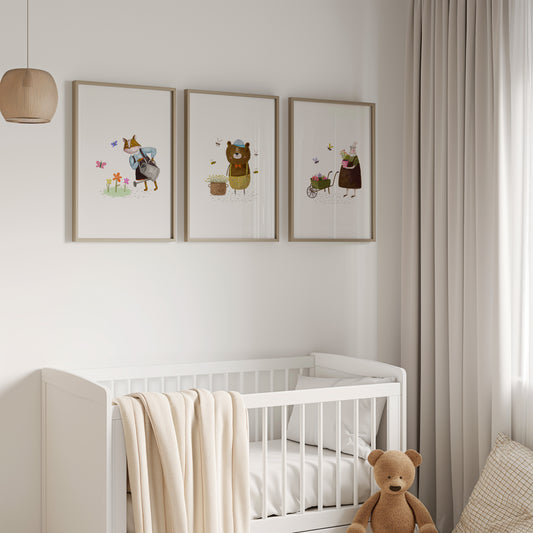 Forest Friends Gardening - Whimsical Animal Wall Art, Set of 3, N153