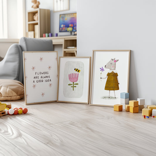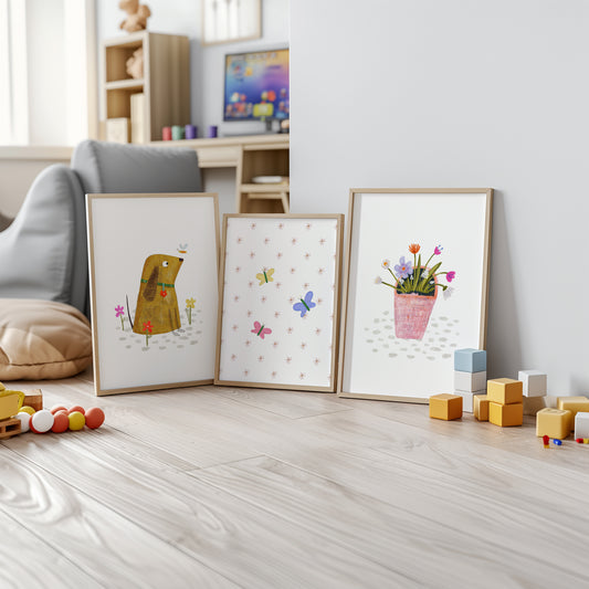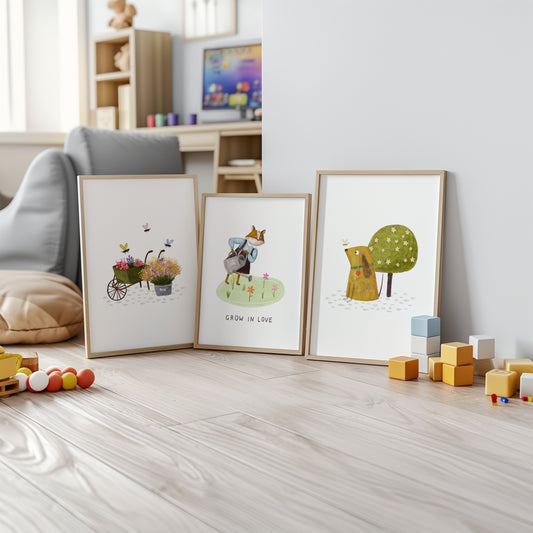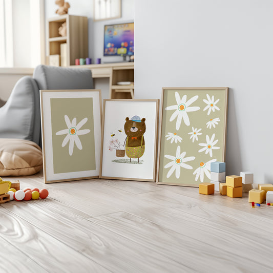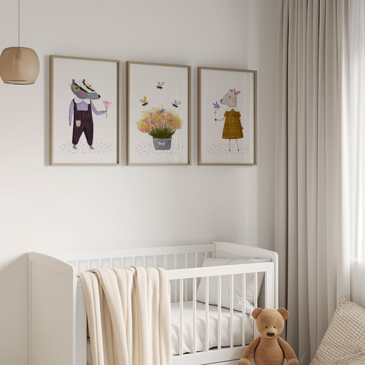 From charming animals and dreamy landscapes to playful patterns and soothing colors, our premium prints spark joy and imagination. Each design is created to complement a variety of nursery themes, ensuring your child’s space feels special and inviting.