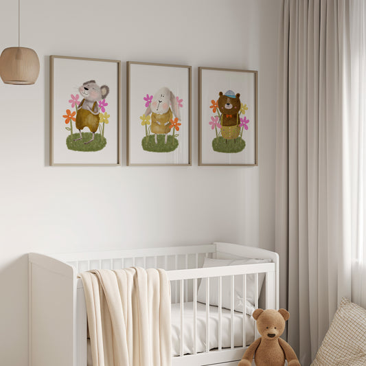 Forest Daydreams: The Flower Whisperers (Nature-themed animal friends for magical kids’ rooms.), Set of 3, N172