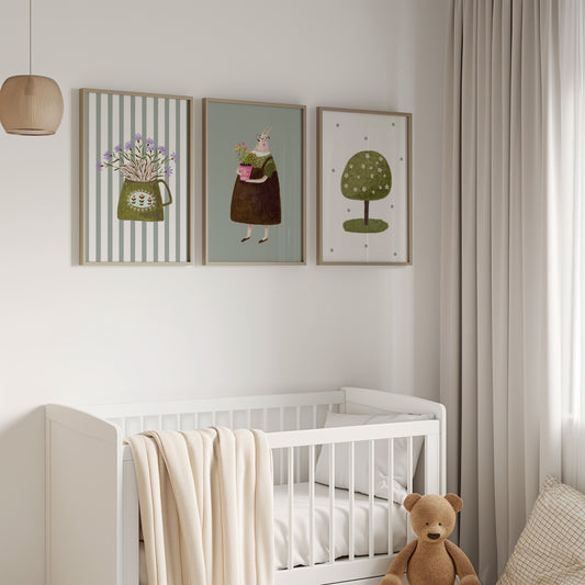 Floral Bunny Charm - Cute Kids' Room Poster Set, Set of 3, N156
