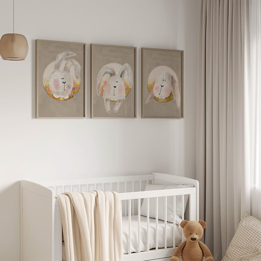 Bunny Bliss Collection – Whimsical Nursery Wall Art, Set of 3, N163