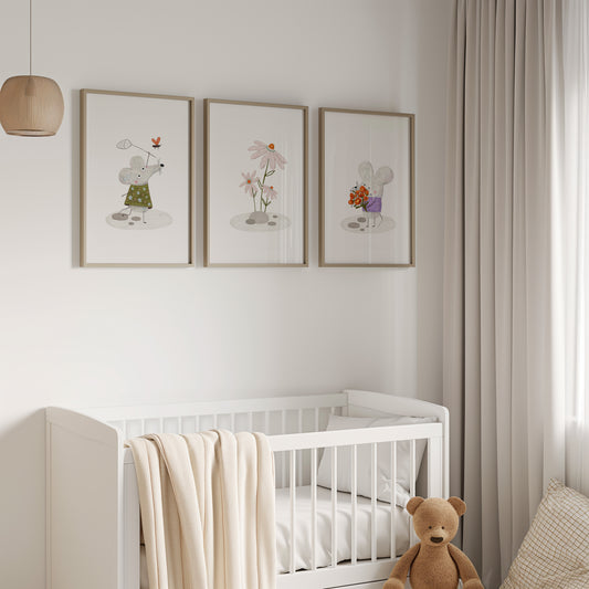 Pastel Whimsy Trio - Animal and Floral Art for Kids, Set of 3, N154
