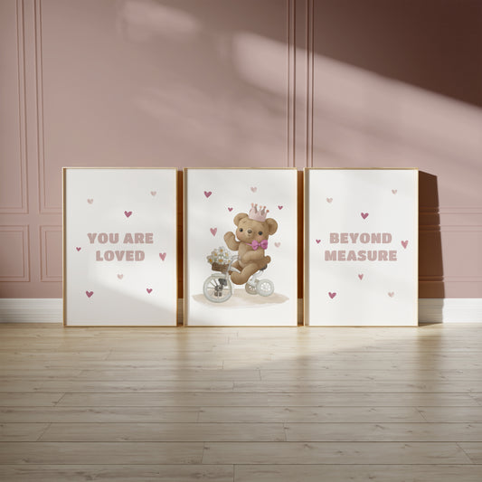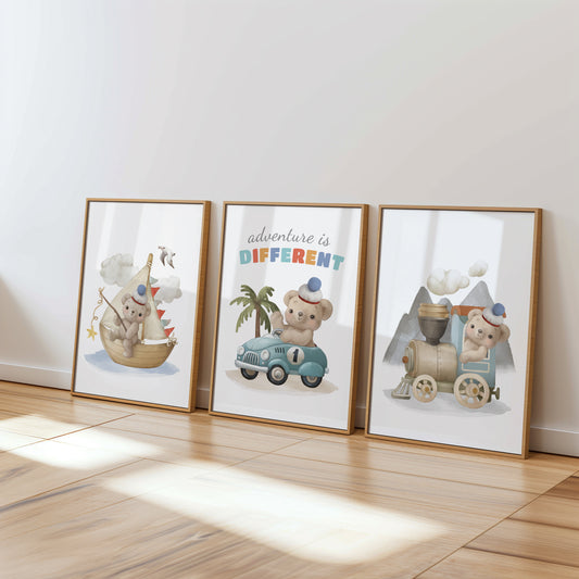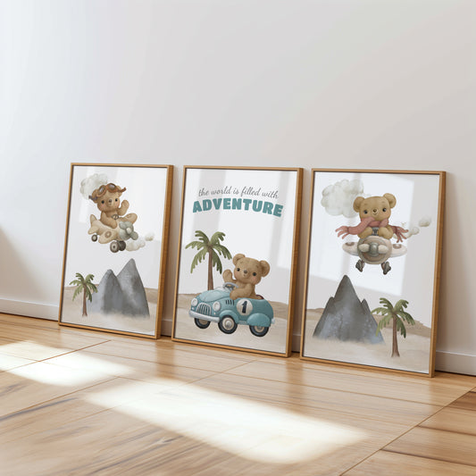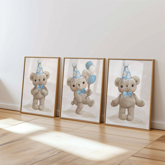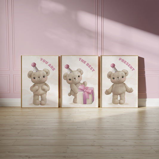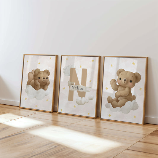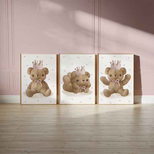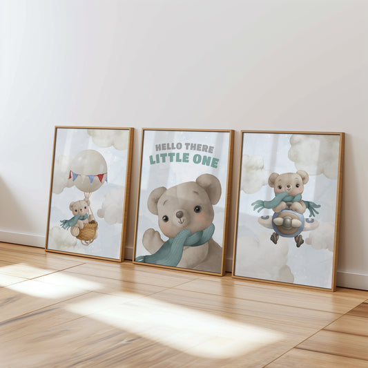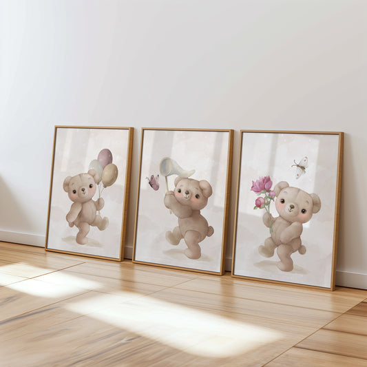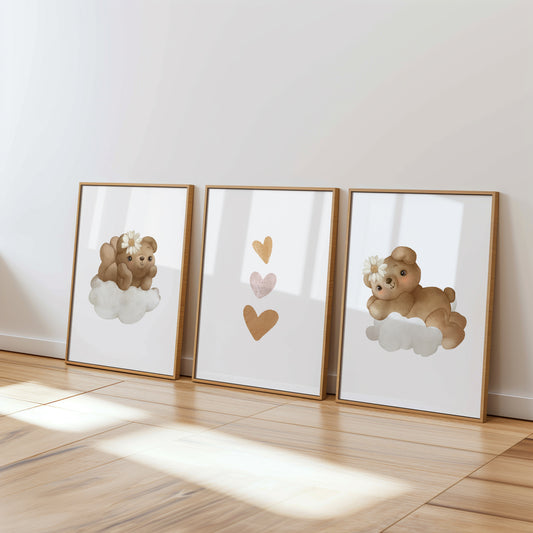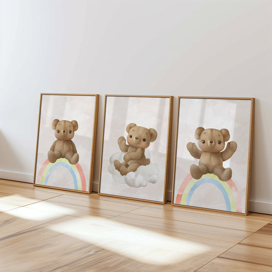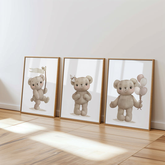 Welcome to the cozy world of our Teddy Bear Nursery collection, where warmth and comfort are captured in every print. Adorned with adorable teddy bears in various heartwarming scenes, this collection brings a touch of traditional charm to modern nurseries. Perfect for creating a snug, loving environment, these prints feature cuddly bears in soft, soothing colors that encourage peaceful dreams. Whether it's for a crib backdrop or a playful accent on the wall, each piece in this collection is designed to evoke the timeless joy and security that only a teddy bear can provide, making your little one's space feel like a hug.
