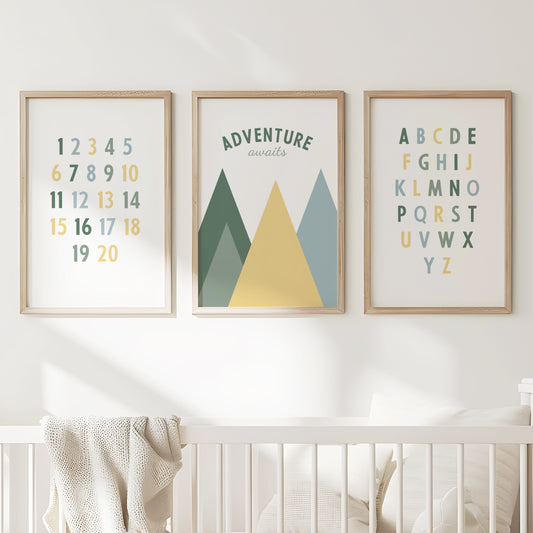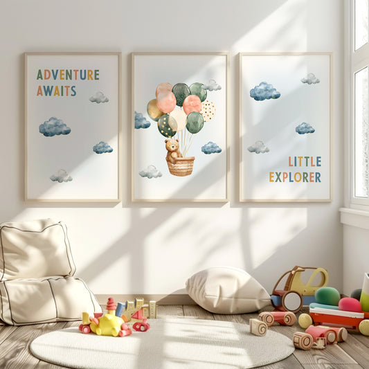 Adventure Awaits – Little Explorer Nursery Wall Art, Set of 3, N065
