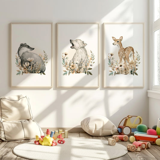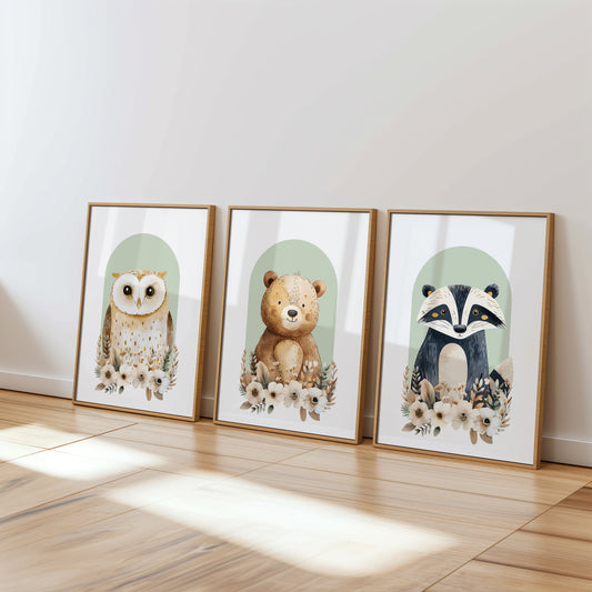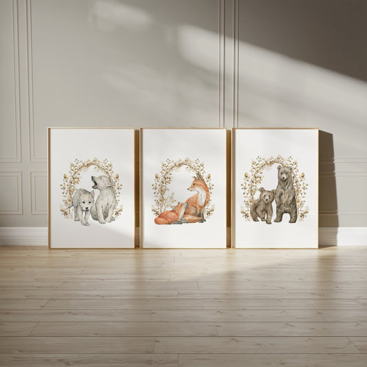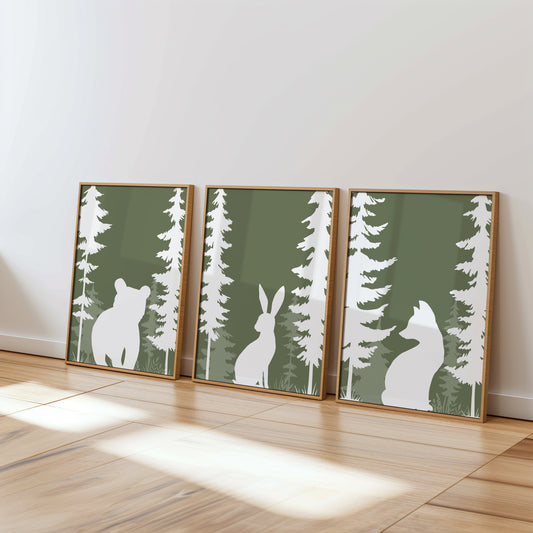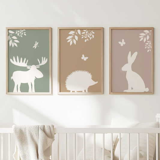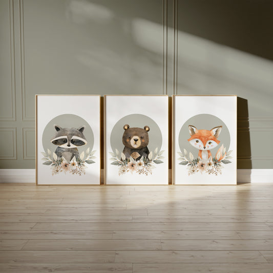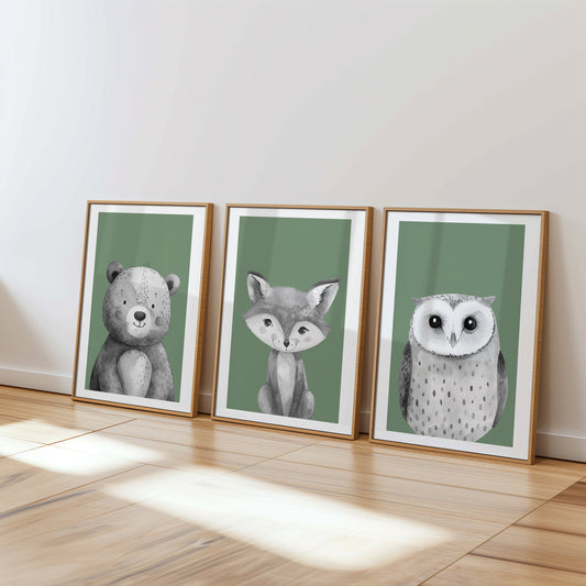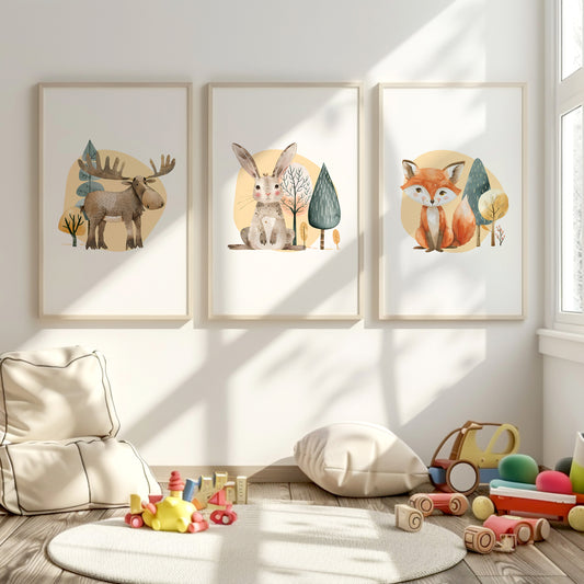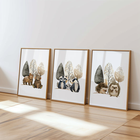 Forest Companions Collection – Choose Any 3 Animal Prints for Kids' Room, Set of 3, N083