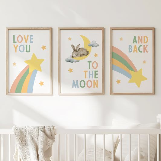 Love You to the Moon & Back - Nursery Wall Art Set, Set of 3, N067