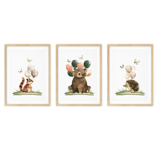Whimsical Woodland Animals with Balloons, Set of 3, N072