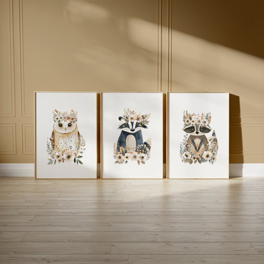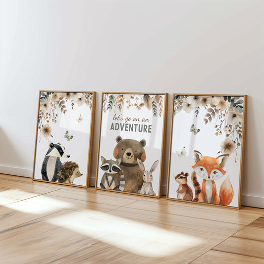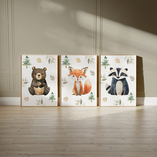 Whimsical Woodland Friends: Animal Nursery Prints, Set of 3, N066