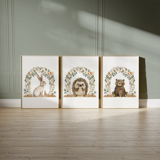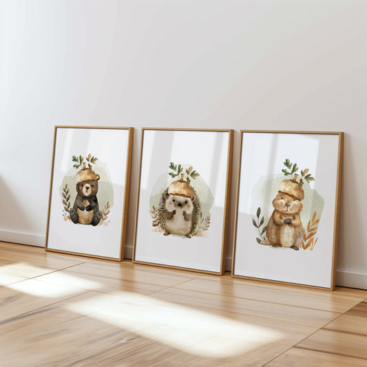 Woodland Acorn Friends - Nursery Animal Wall Art, Set of 3, N093