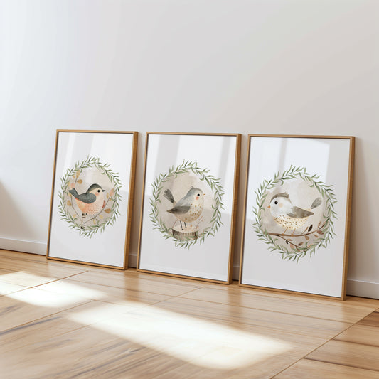 Songbirds in Bloom: Enchanting Animal Wall Art for Nurseries, Set of 3, N096