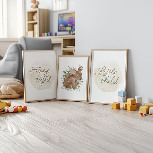 Sleep Tight, Little Child: Gentle Deer Nursery Art Set, Set of 3, N149