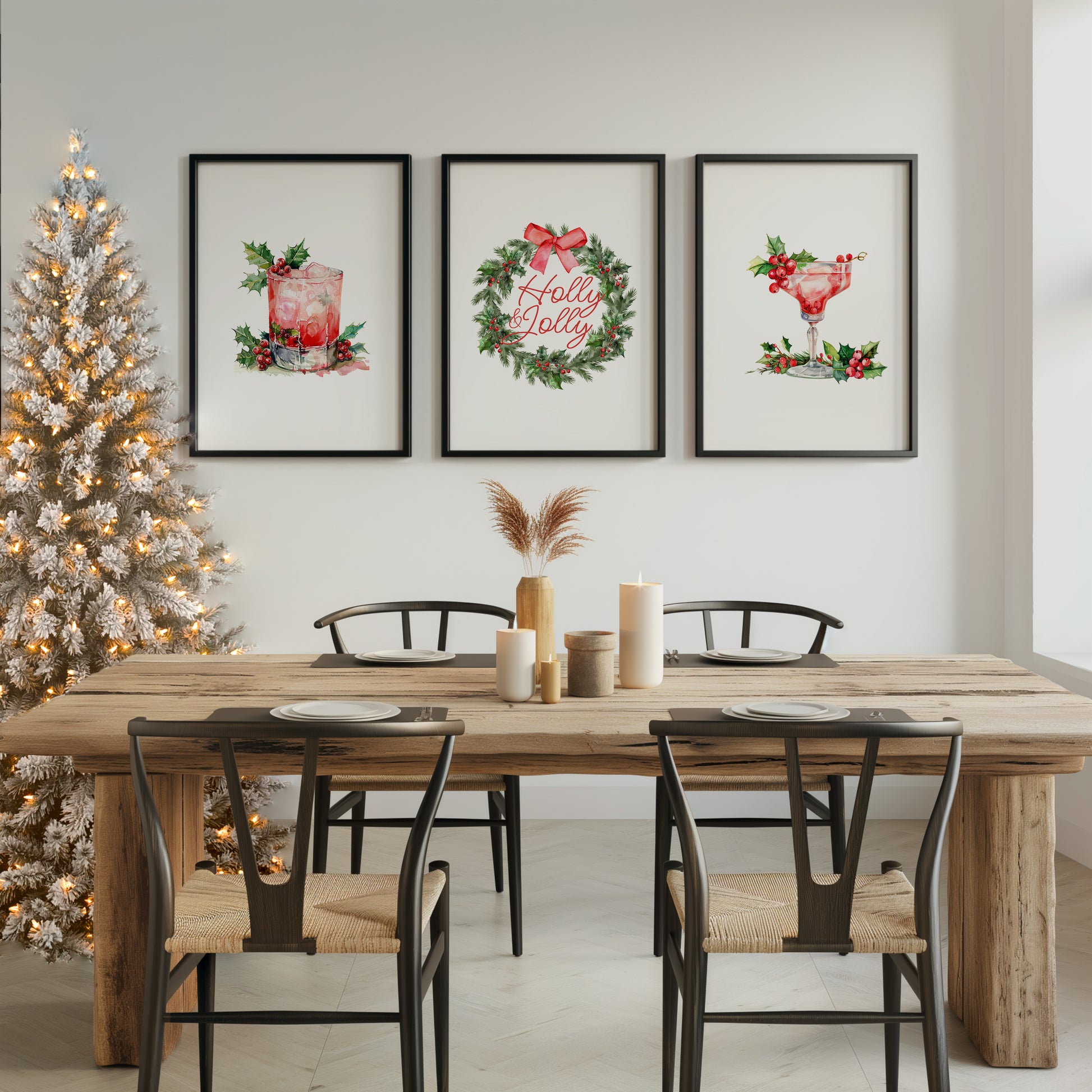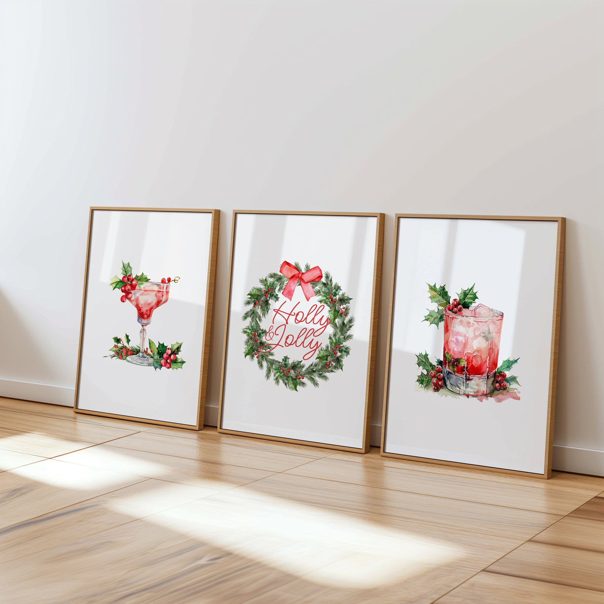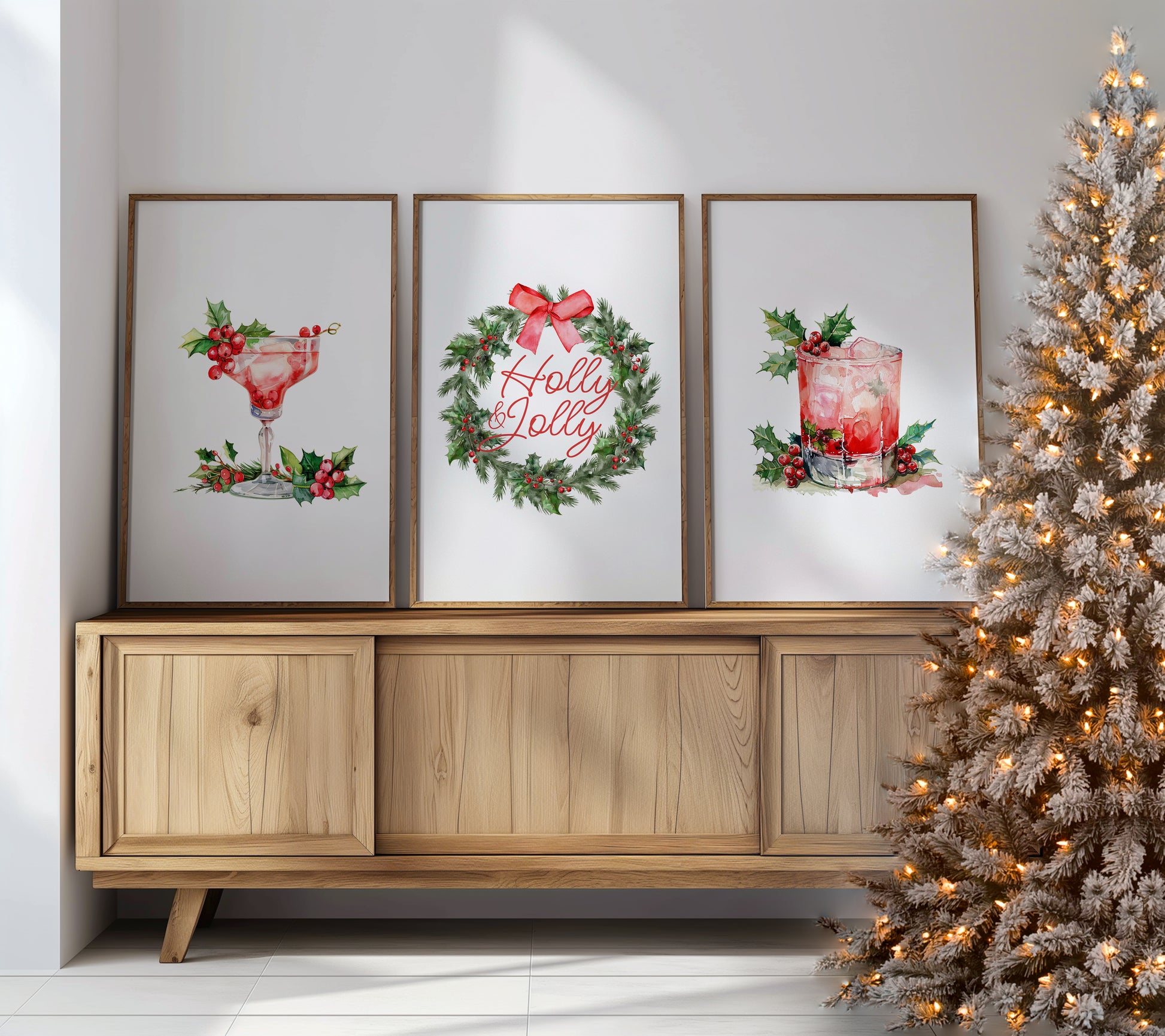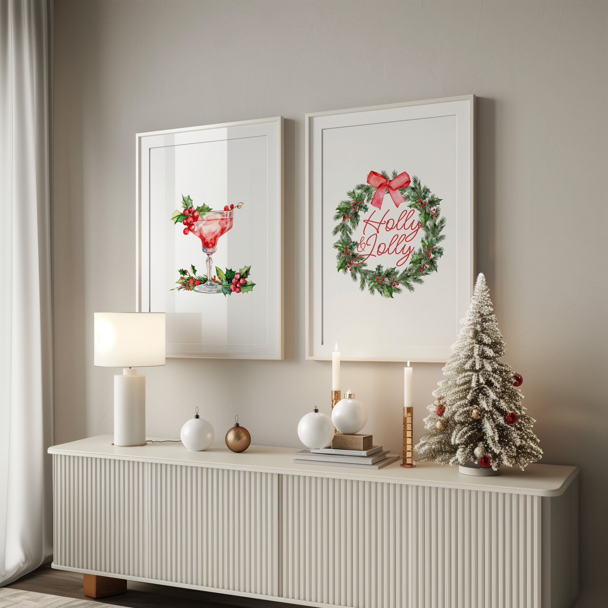 Make your holiday decor unforgettable with the "Festive Cheers & Holly Dreams" collection. This set combines the elegance of festive drinks with the warmth of a classic Christmas wreath. Whether hosting holiday dinners or cozying up with loved ones, these posters will transform your space into a celebration of joy and style.