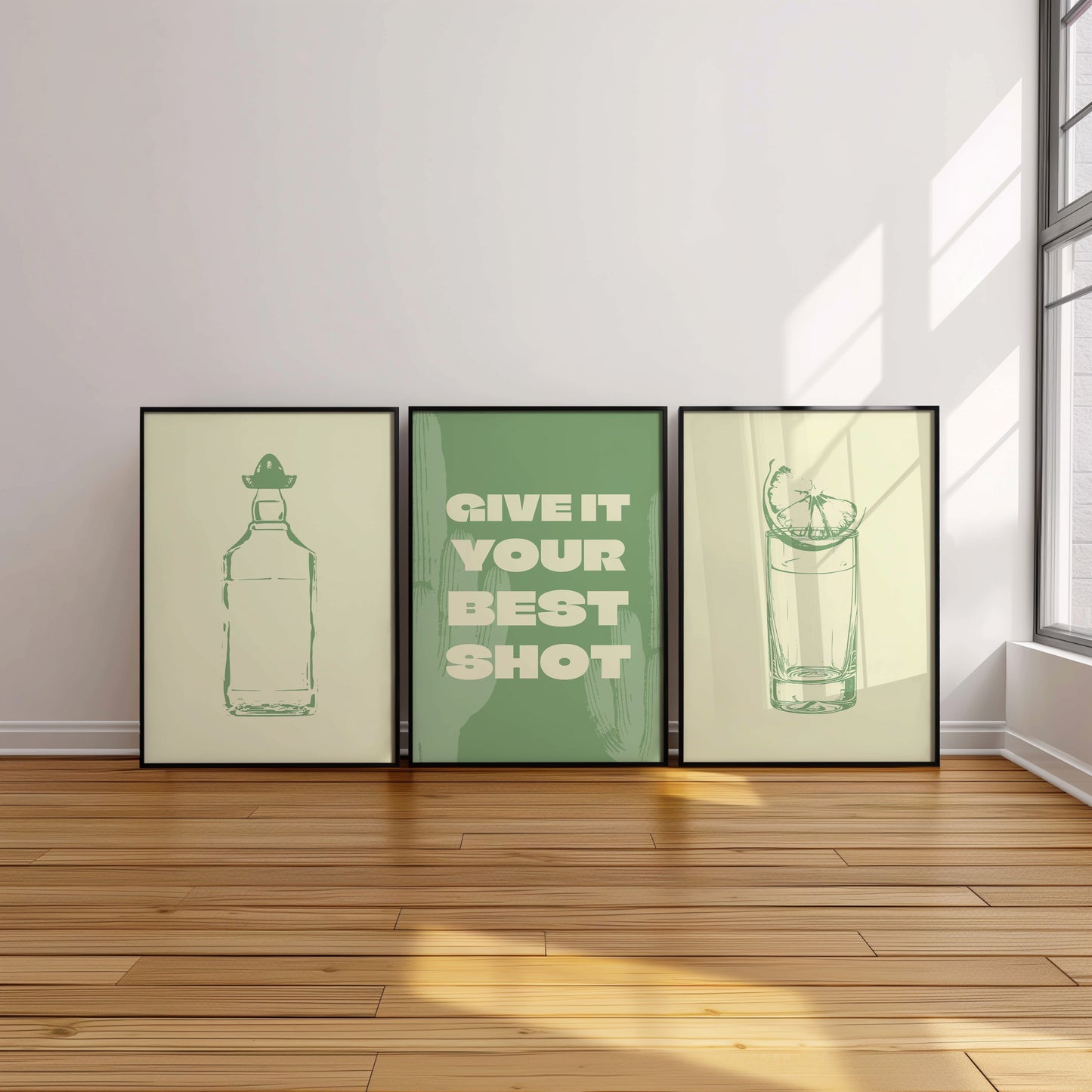 Give It Your Best Shot - Modern Bar Wall Decor, Set of 3, D035