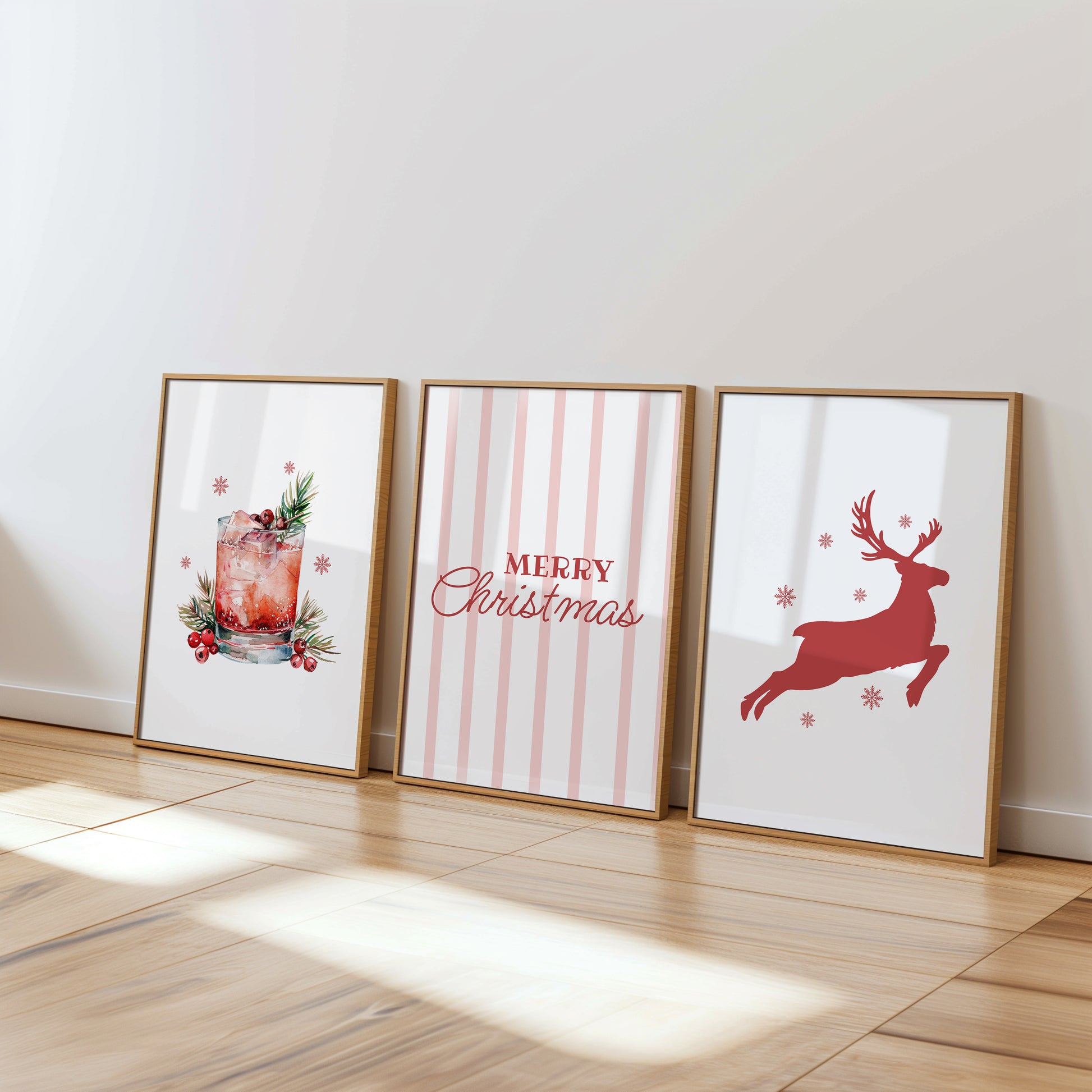 Holiday Elegance: Reindeer, Christmas Spirit, and Cranberry Cocktail, Set of 3, D080