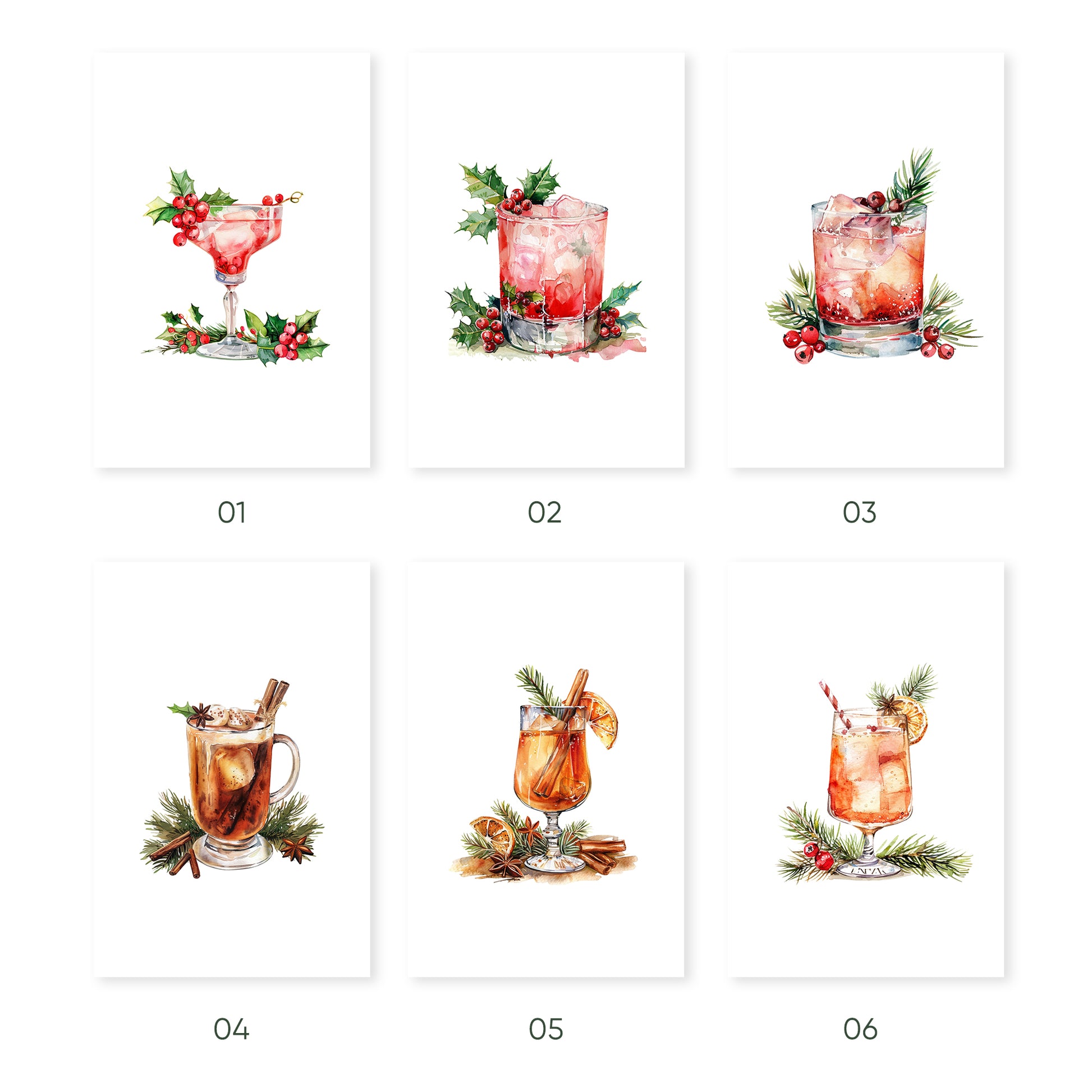 Holiday Spirits: Artful Cocktails for Your Walls, Set of 3, D077