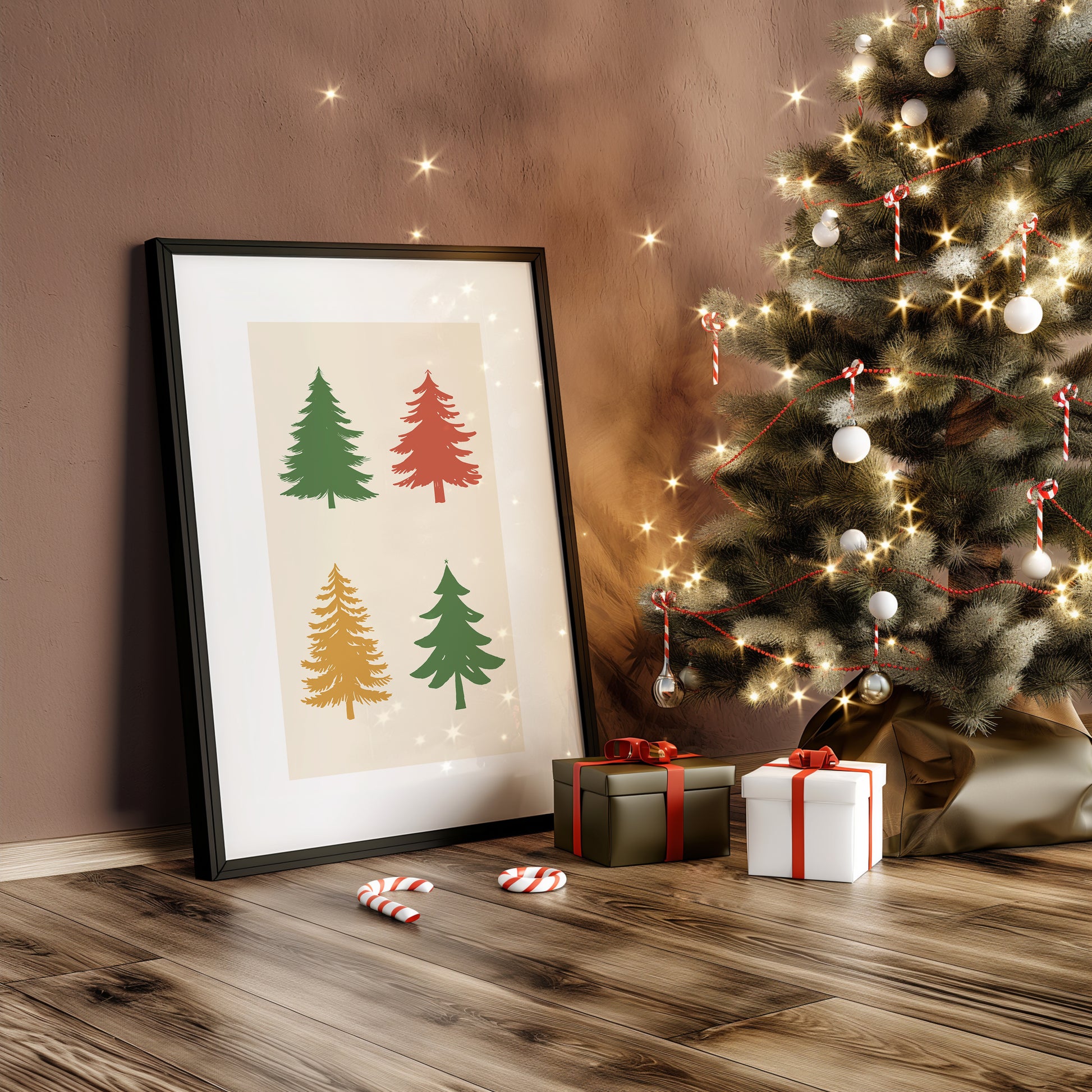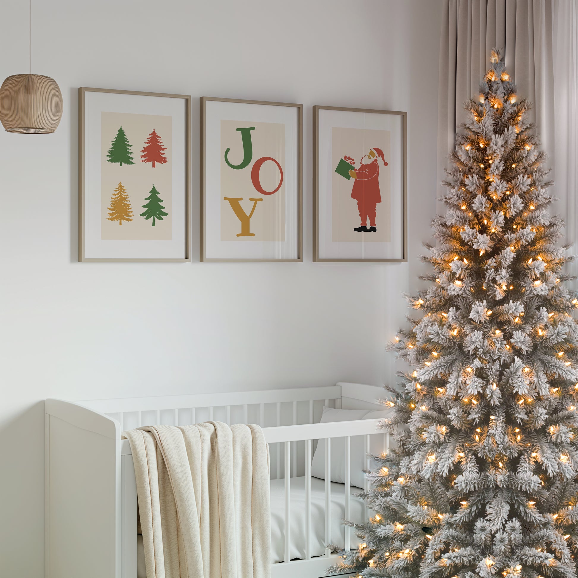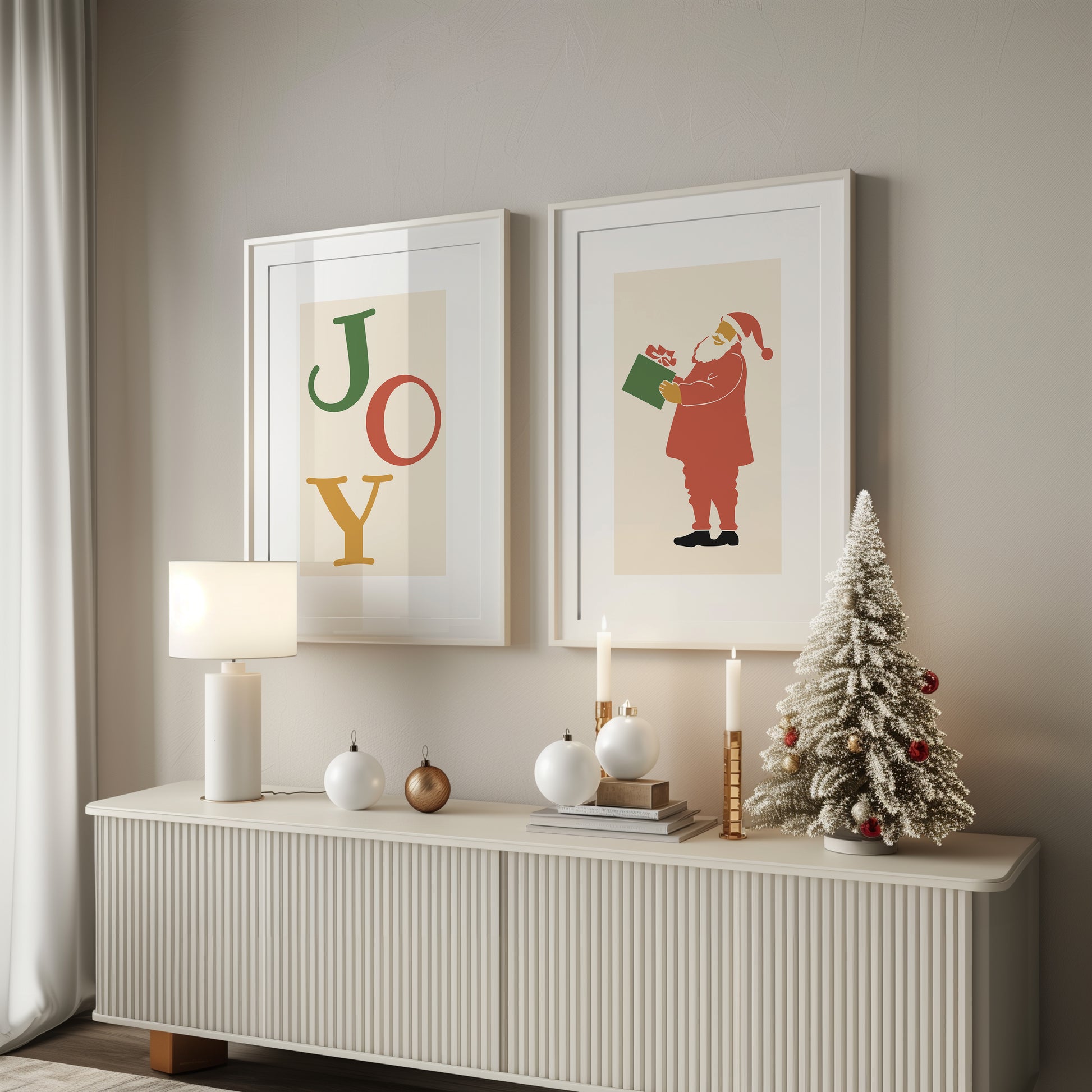 Celebrate the season with elegance and fun through this delightful set of Christmas-themed posters. The clean lines of colorful holiday trees, a bold "JOY" centerpiece, and a cheerful Santa make this set perfect for bringing festive charm to any wall. Designed to spread joy, these prints are a must-have for your holiday decor.