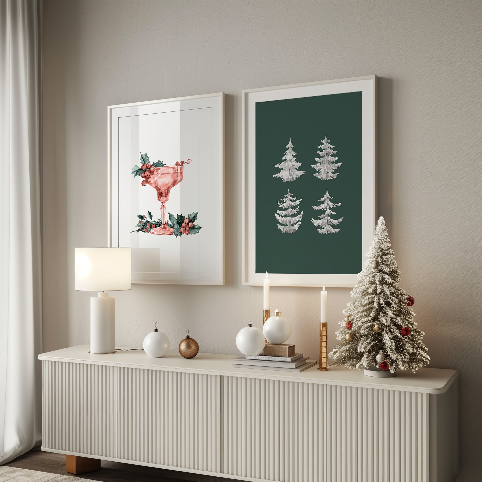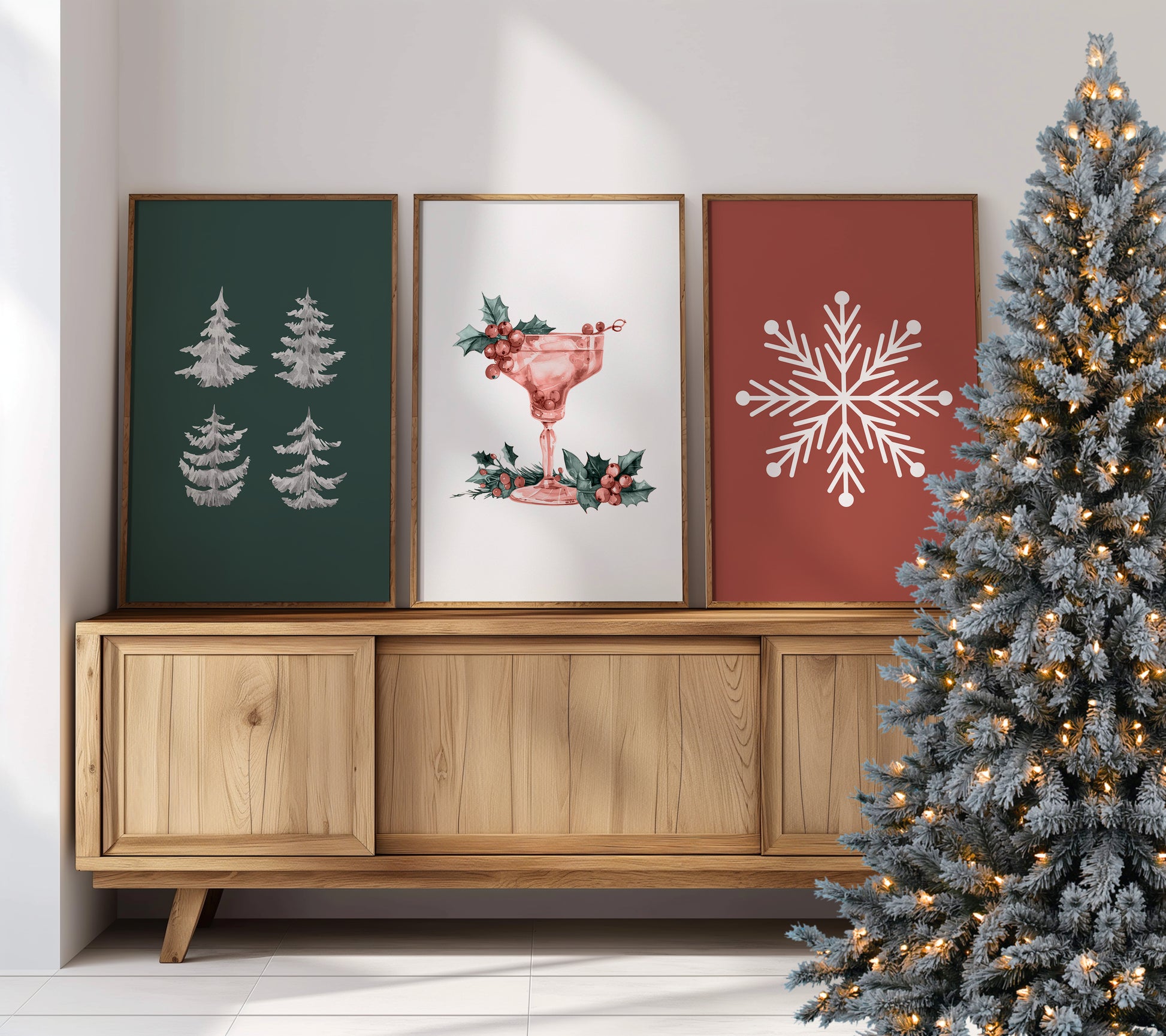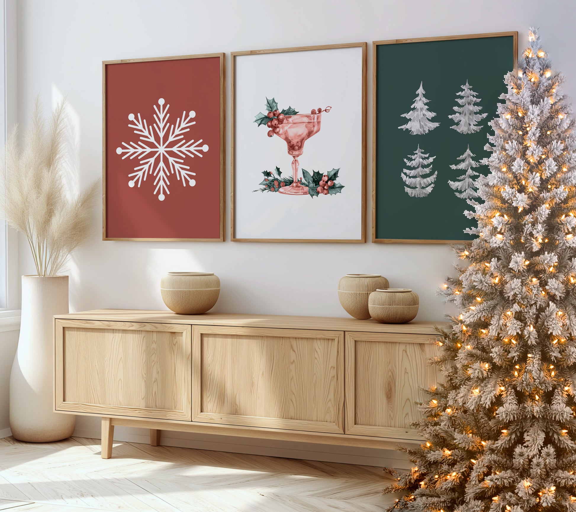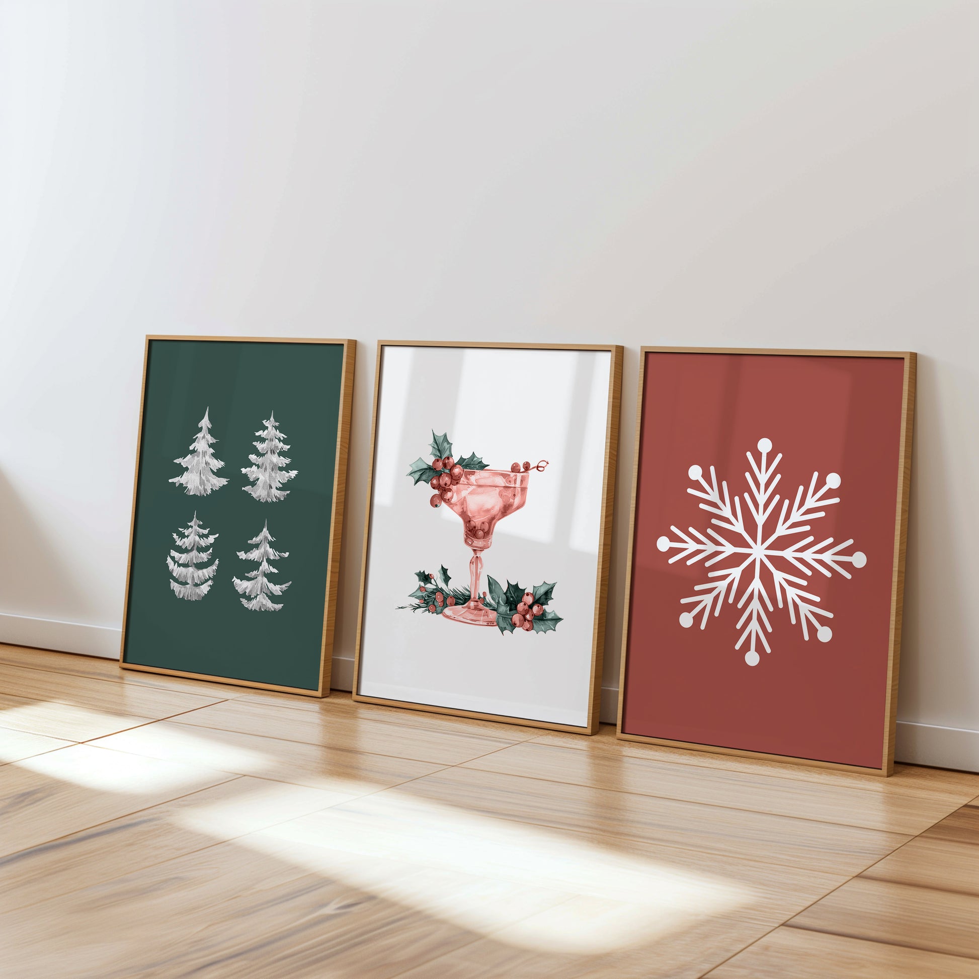 Make your walls merry and bright! This set of three festive prints combines contemporary holiday vibes with classic Christmas colors. Whether hosting a party or decorating a cozy space, these posters will delight and inspire.